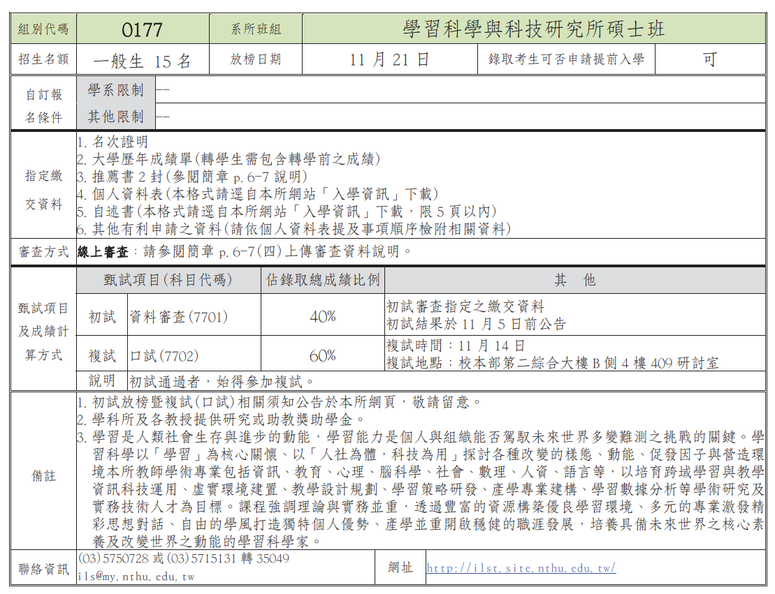 簡章總則與報名請參閱本校招生策略中心:https://adms.site.nthu.edu.tw/p/406-1207-293306,r323.php?Lang=zh-tw